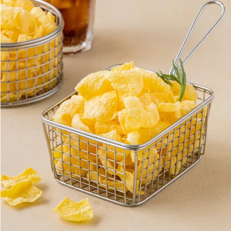 Se trata de chips de maíz con sabor a maíz tostado, un snack que conserva el sabor del maíz. Los chips de maíz se fríen crujientes en aceite de girasol y se sazonan con sal marina nacional para darle un sabor salado.