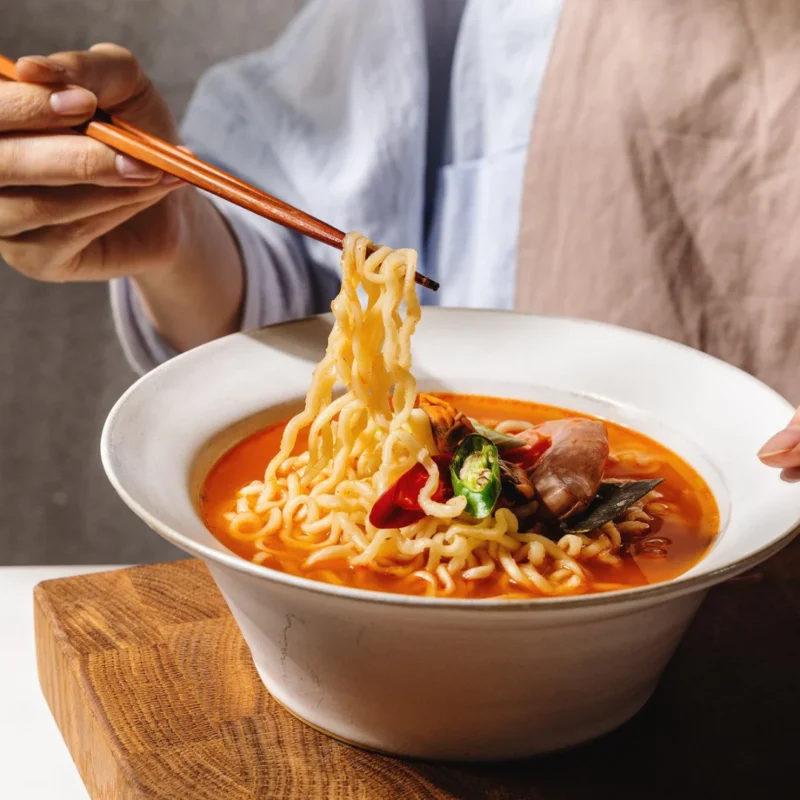 -Fideos: Los fideos son gruesos y ondulados, similares a los fideos udon. Están diseñados para absorber y retener el sabor del caldo.